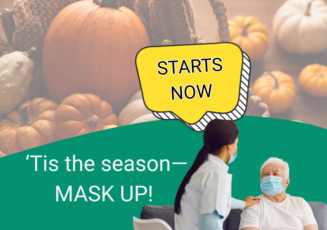 Beginning Nov. 1, 2025 through April 30, 2026 for participants and visitors, we continue to highly recommend, but not require, routine indoor masking in participant care areas during respiratory virus season.