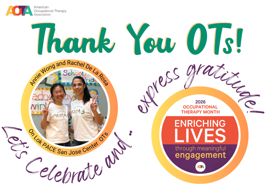 To all of our incredible Occupational Therapists and assisting Rehabilitation Aides across On Lok, Thank you! You are an integral part of our participant’s ability to remain in their own homes, safely and with a sense of purpose.